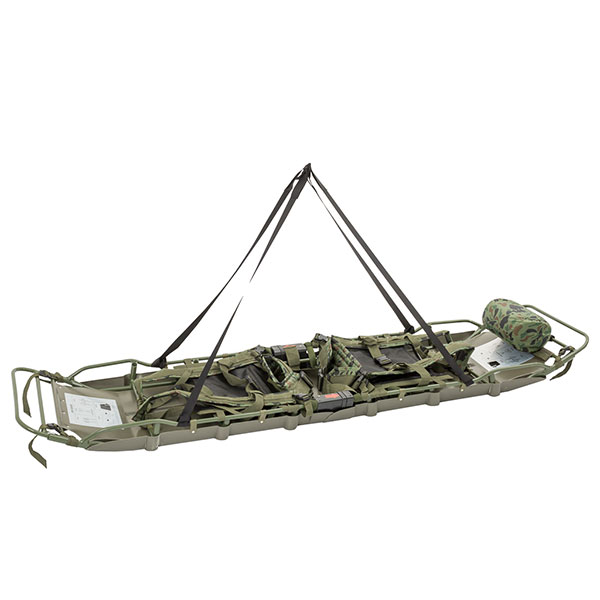 3、懸鉤能與飛機(jī)上的掛鉤鏈接,實(shí)現(xiàn)野外救援,擔(dān)架配有安全帶和墊子。