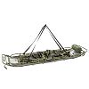 此擔架的構造著眼于急救的特殊性,如崎嶇的山區(qū)、空中或海上救援,框架堅固耐用,簡便可靠的裝置讓操作人員能夠安全快捷的采取急救措施。鉤懸能與飛機上掛鉤連接,實現(xiàn)野外救援。擔架配有安全帶和墊子。由不銹鋼管和網(wǎng)制成,不會對病人造成另外的傷害,比普通擔架更牢固,可與板式擔架一起使用。可分成兩部分,易運輸和儲存。