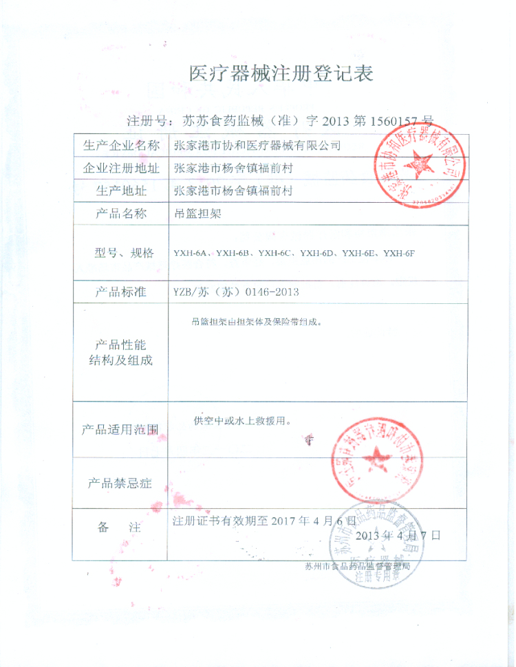 吊籃擔架注冊登記表